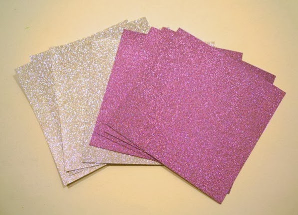 I decided not to buy the kits, because they were oddly expensive and nothing special. Instead, I bought two packages of sparkly 6 x 6-inch (15.25 x 15.25 cm) paper in white and mauve.